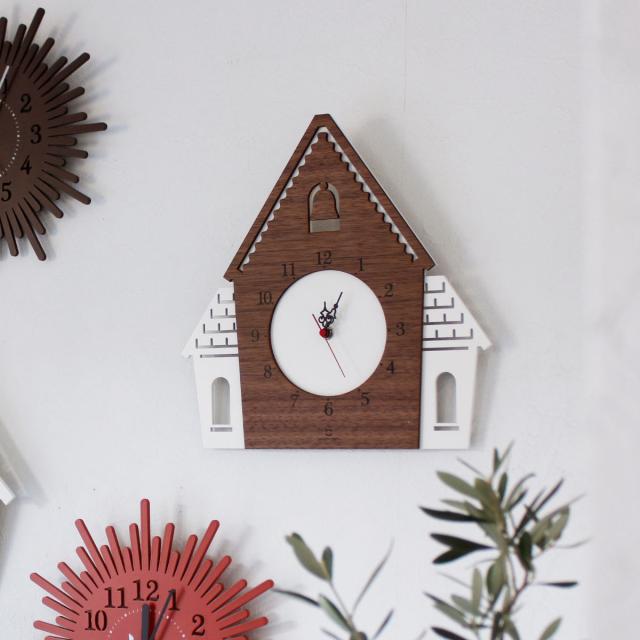 童話に出てきそうなお家がモチーフの掛け時計です。職人による手作業でひとつひとつ丁寧につくられています。