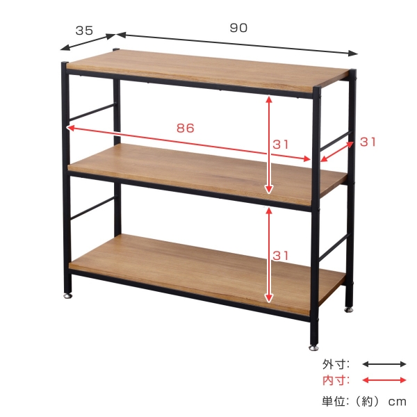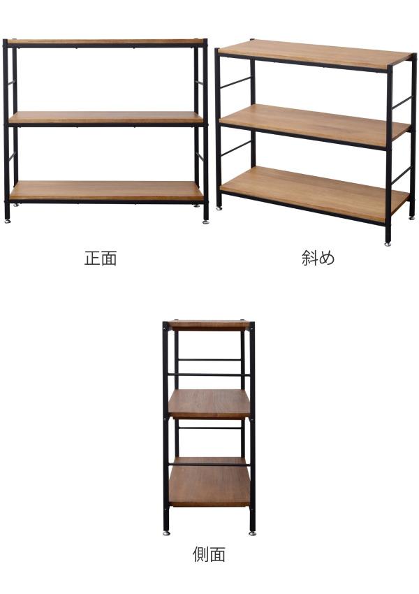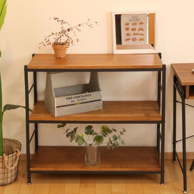 オープンラック 3段 天然木棚 スチールフレーム Paulo 幅90cm ( 本棚 収納ラック シェルフ リビング収納 アイアン 天然木 ディスプレイラック 収納 ラック 飾り棚 収納棚 木製 レトロ ブラウン ブラック おしゃれ オープンラック 木製)