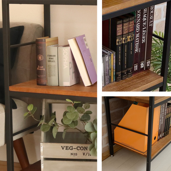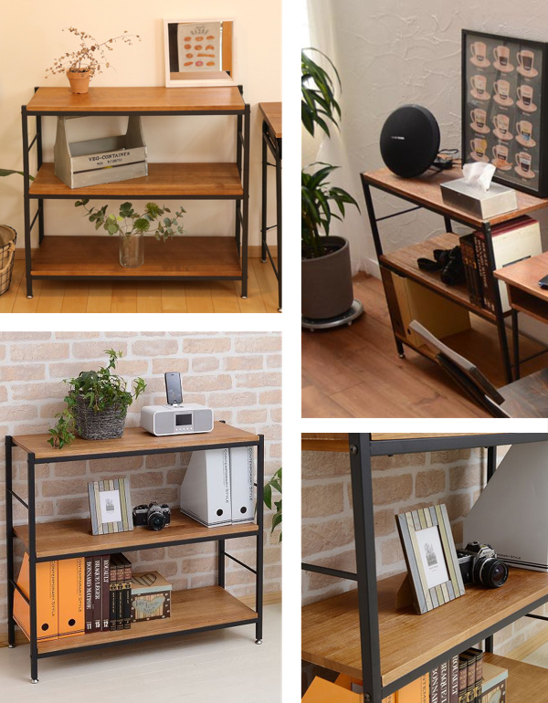 天然木と無骨なスチールの組み合わせがマッチした、品格ある佇まいのアンティーク調ラックです。