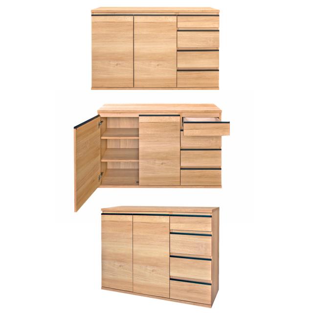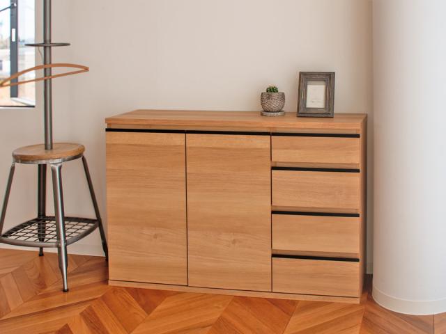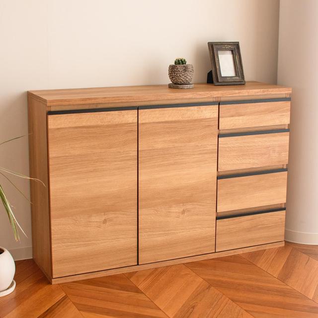スリムキャビネット 幅120cm 引出し4段 ムルート 日本製 完成品 ( キャビネット スリム 大容量 棚 ラック 収納 奥行スリム 食器棚 引き出し 可動棚 リビング ナチュラル シンプル )