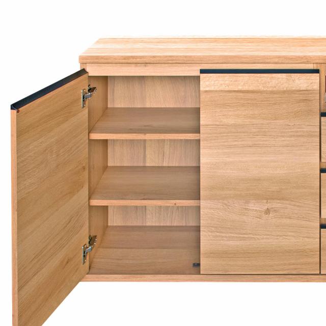 ブラックハンドルがアクセントのキャビネットです。取っ手がないのでスッキリとした印象です。シンプルなデザインなので様々なスタイルのお部屋に馴染みます。