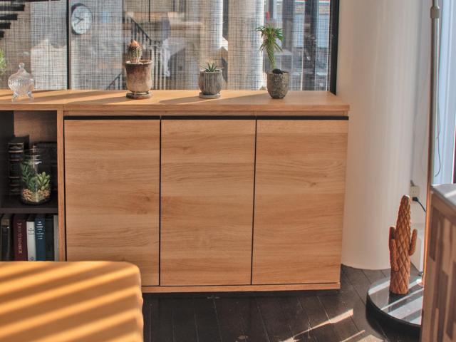 同じシリーズのキャビネットやシェルフと揃えると統一感が出てよりお洒落な空間になります。収納力もアップし、壁面収納としてもお使いいただけます。