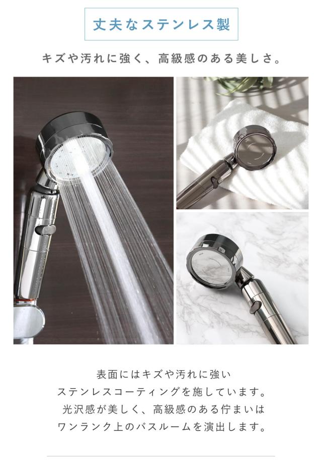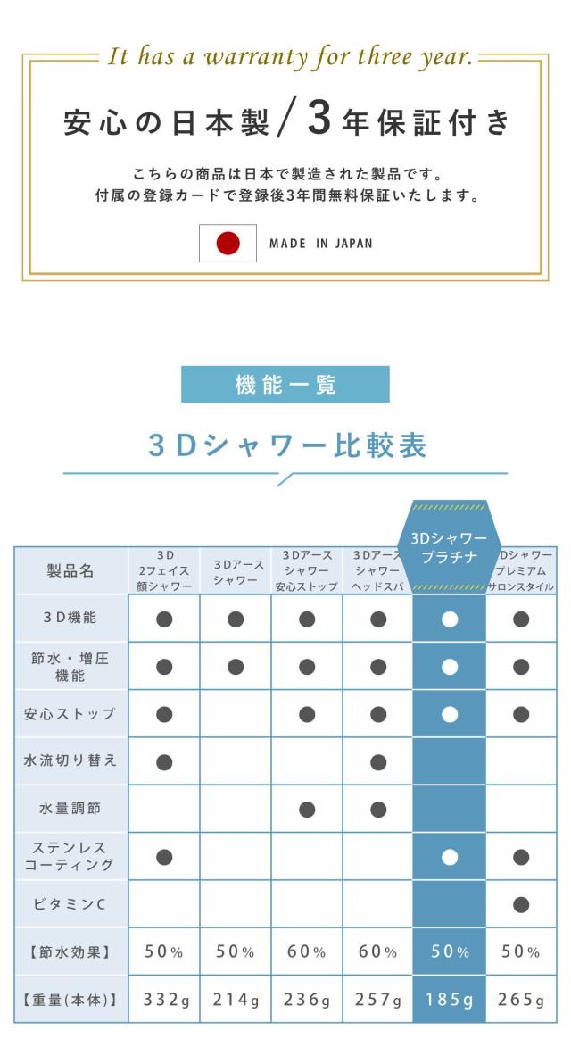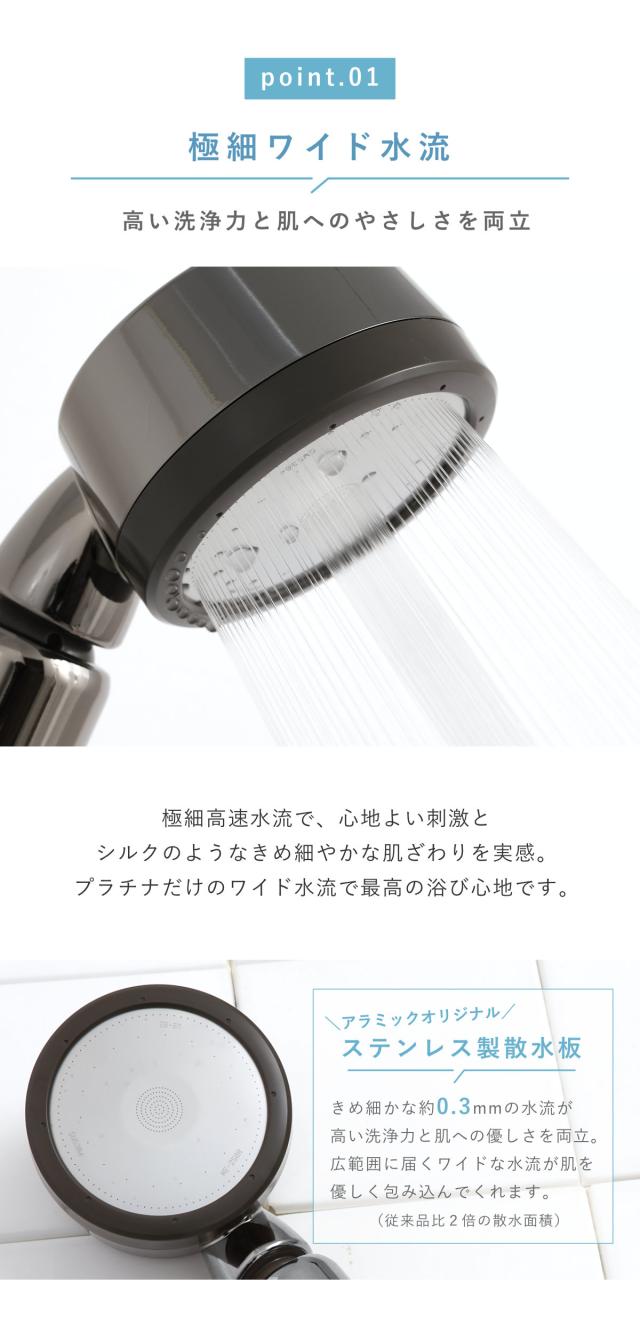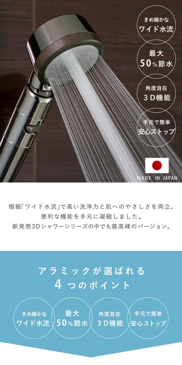 シャワーヘッド 節水 3D shower platinum スリーディ・シャワー プラチナ ( Arromic アラミック 節水シャワー 水圧アップ ステンレス 日本製 3年保証 取付簡単 極細ワイド 高速水流 節約 シャワー 付け替え )