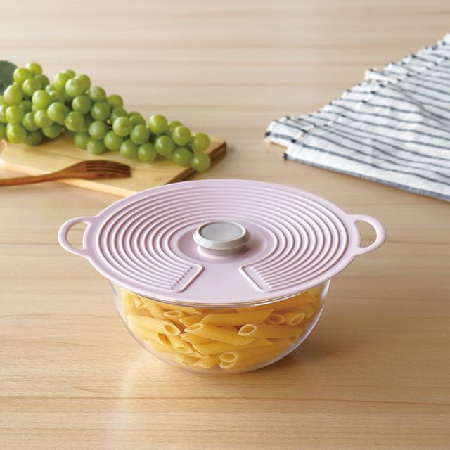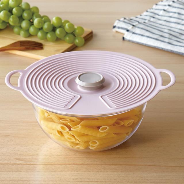 ピタっと密着して、料理の保存や温めに便利なシリコン製のフタです。冷蔵庫から取り出して外さずそのまま温めができます。洗って繰り返し使えるので経済的でエコです。