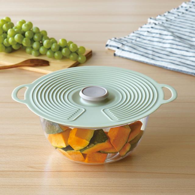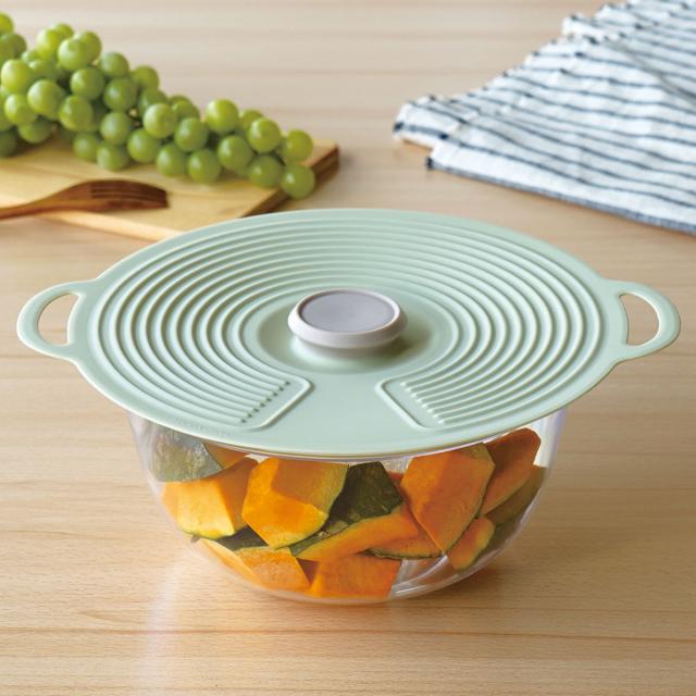 ピタっと密着して、料理の保存や温めに便利なシリコン製のフタです。冷蔵庫から取り出して外さずそのまま温めができます。洗って繰り返し使えるので経済的でエコです。