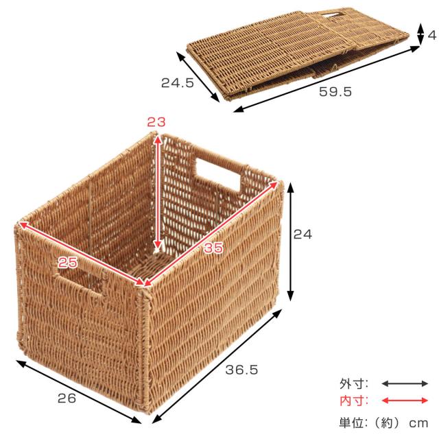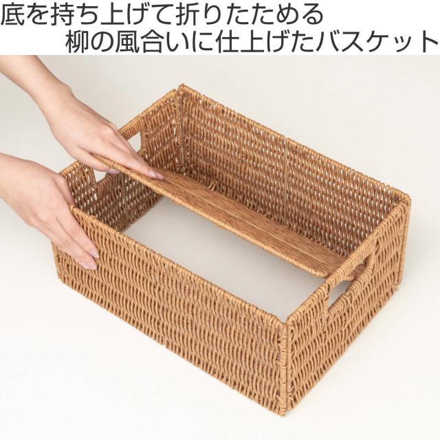 収納ボックス ペイル フェイク 柳 折り畳みバスケット L ( 洗える かご 収納 カゴ 天然素材風 幅36.5×奥行26×高さ24cm 折りたたみ 水洗い 収納かご 収納ケース 持ち手付き 小物収納 小物入れ おしゃれ キッチン インテリア 雑貨 )