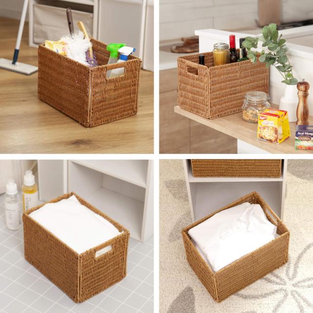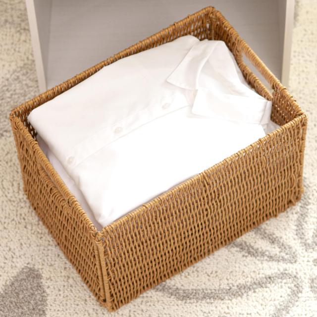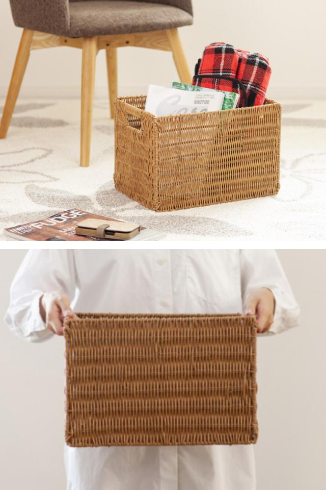 本物の柳に近い風合いに仕上げたバスケットです。天然素材で編まれたような自然な温かみを感じます。生活感が出やすいアイテムを入れるだけでスッキリまとまり、幅広いテイストのインテリアに馴染みます。