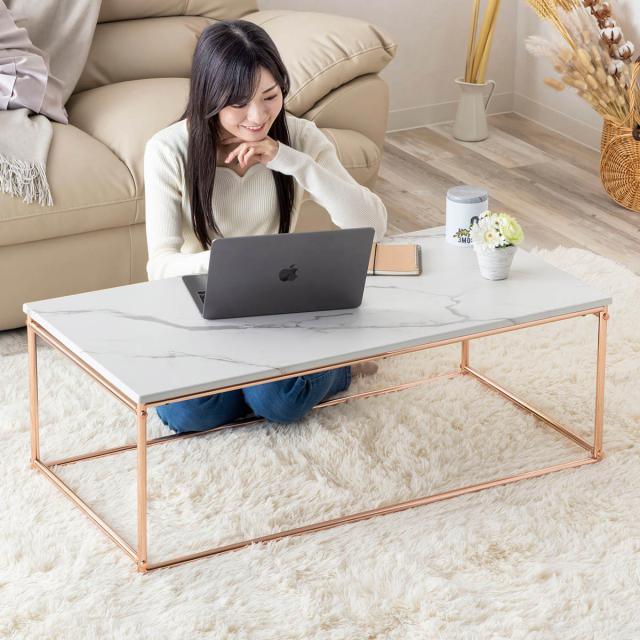 大理石柄×ピンクゴールド脚のリビングテーブル 幅100cm