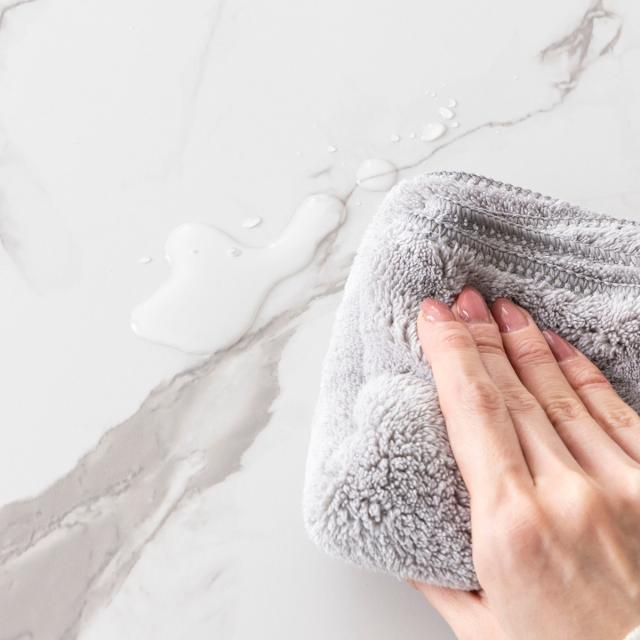 大理石柄の天板は、水や汚れに強い塩化ビニル素材でお手入れしやすいです。