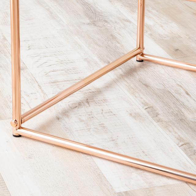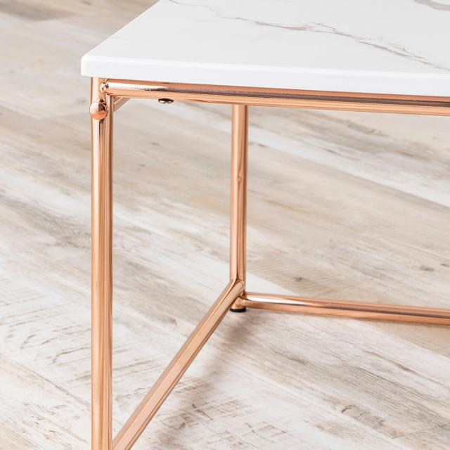 エレガントな大理石柄の天板と高級感のあるピンクゴールドメッキのリビングテーブルです。可愛らしくフェミニンなデザインに仕上げました。