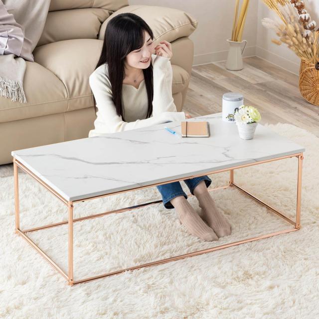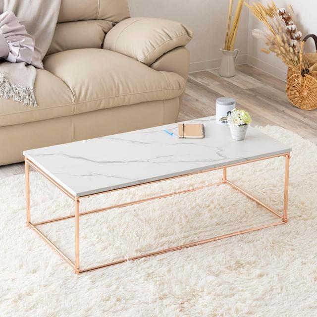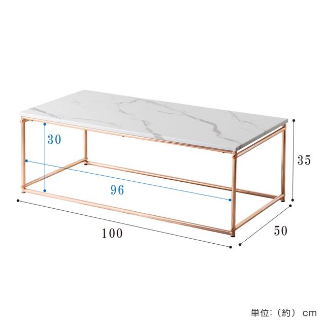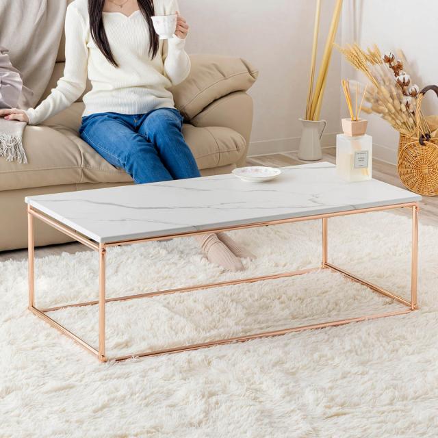 リビングテーブル 幅100cm センターテーブル ( ローテーブル テーブル 大理石柄 長方形 ピンクゴールド メッキ 脚 フェミニン エレガント 高級感 )