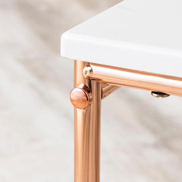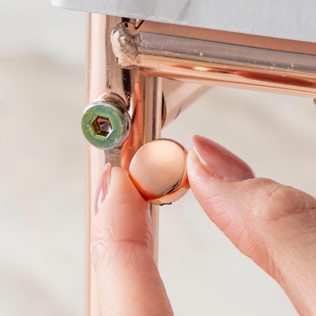 脚部のピンクゴールドと同色のボトルキャップをかぶせてボトルを隠します。ボトルが目立たなくなり、スッキリ統一された脚部になります。