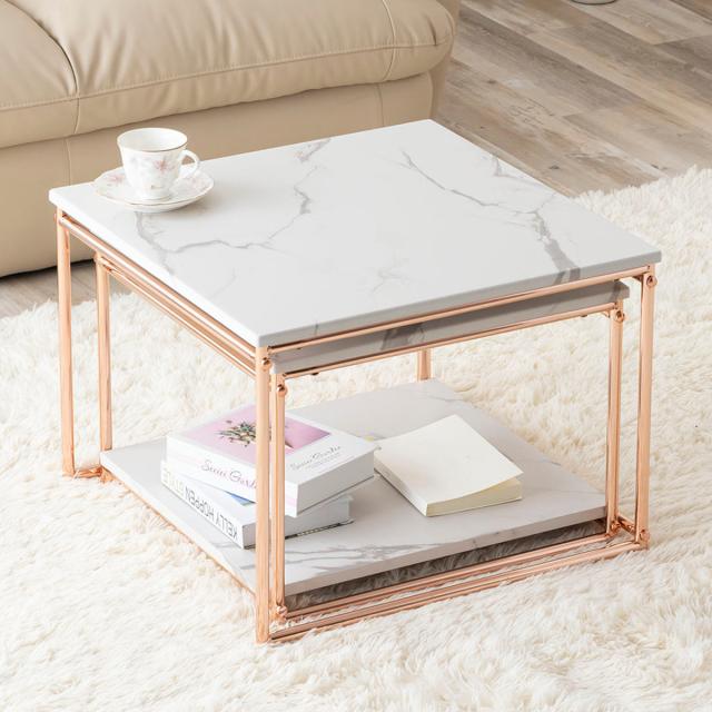大理石柄×ピンクゴールド脚のネストテーブル