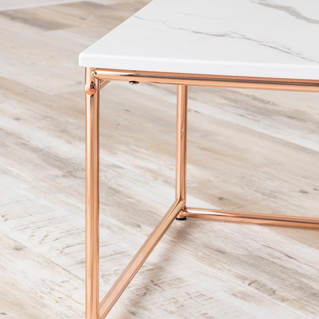 エレガントな大理石柄の天板と高級感のあるピンクゴールドメッキのネストテーブルです。可愛らしくフェミニンなデザインに仕上げました。
