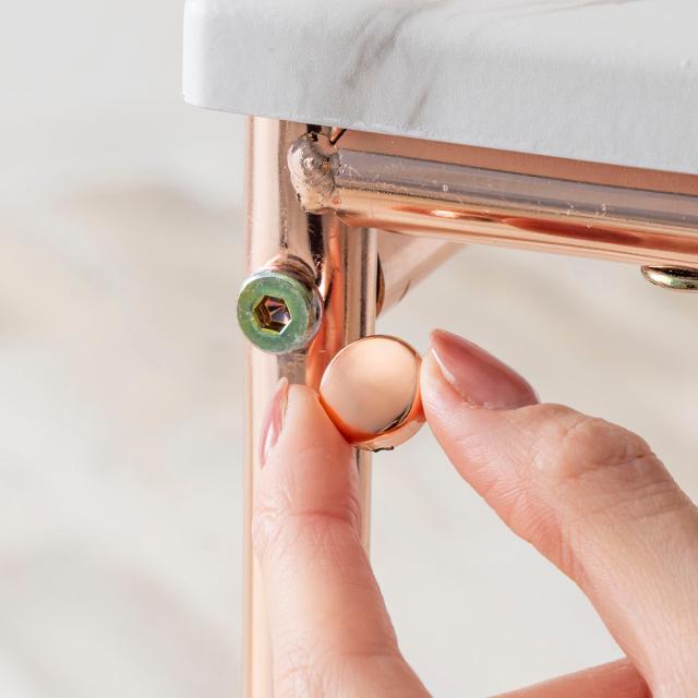 脚部のピンクゴールドと同色のボトルキャップをかぶせてボトルを隠します。ボトルが目立たなくなり、美しい見た目になります。