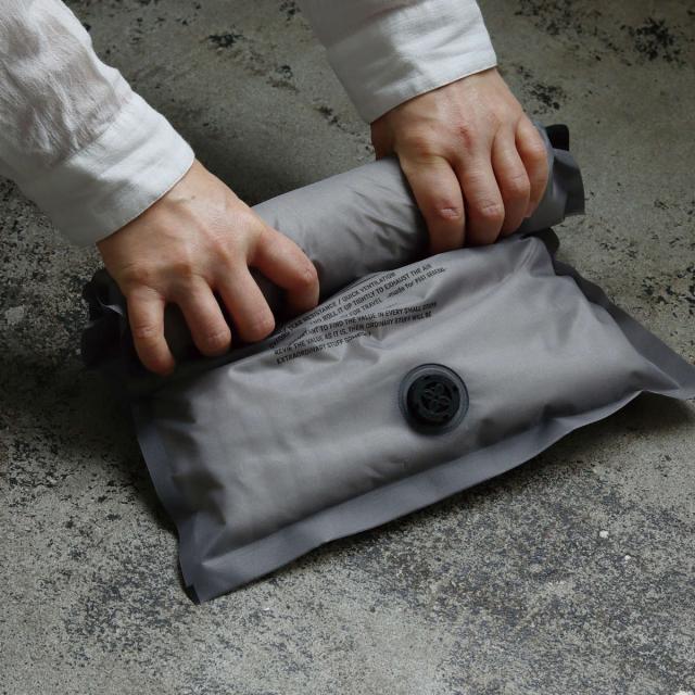 袋の上部をスライダーで閉じ、手で袋を丸めて中の空気をロック式排気弁から排出することで圧縮できます。掃除機を使わずに手で簡単に圧縮できるので、旅先などで重宝します。安定的に空気が抜ける仕様となっています。