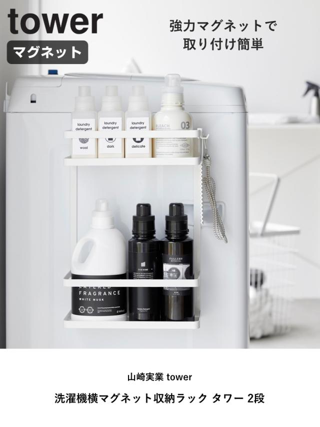 山崎実業 tower 洗濯機横マグネット収納ラック タワー 2段 ( 4903208018005 タワーシリーズ 洗濯機横収納 収納ラック マグネット 洗濯機収納 2段ラック 収納 フック付き スチール製 2段収納 )