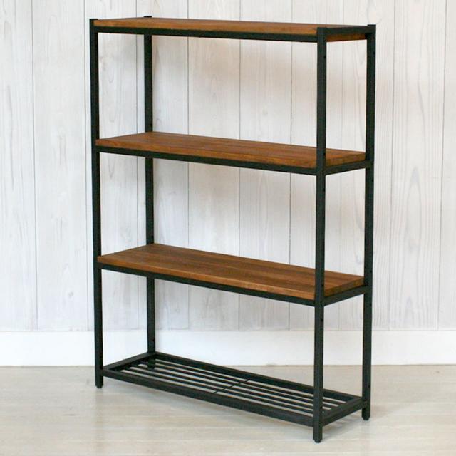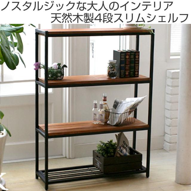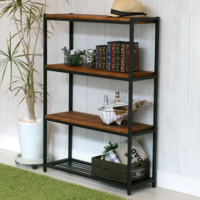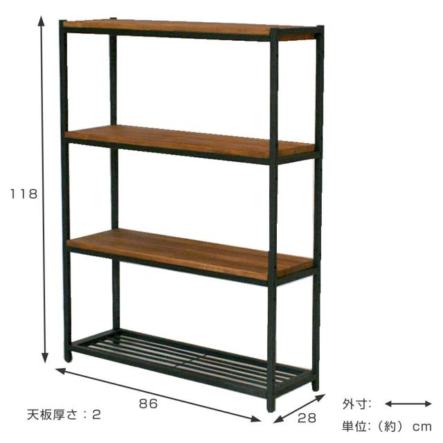 天然木×アイアンのレトロモダンな4段シェルフ 奥行28cm