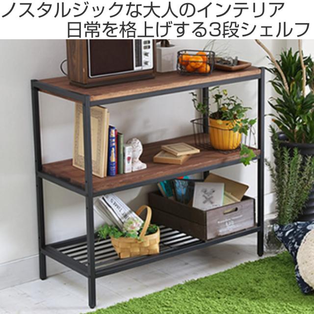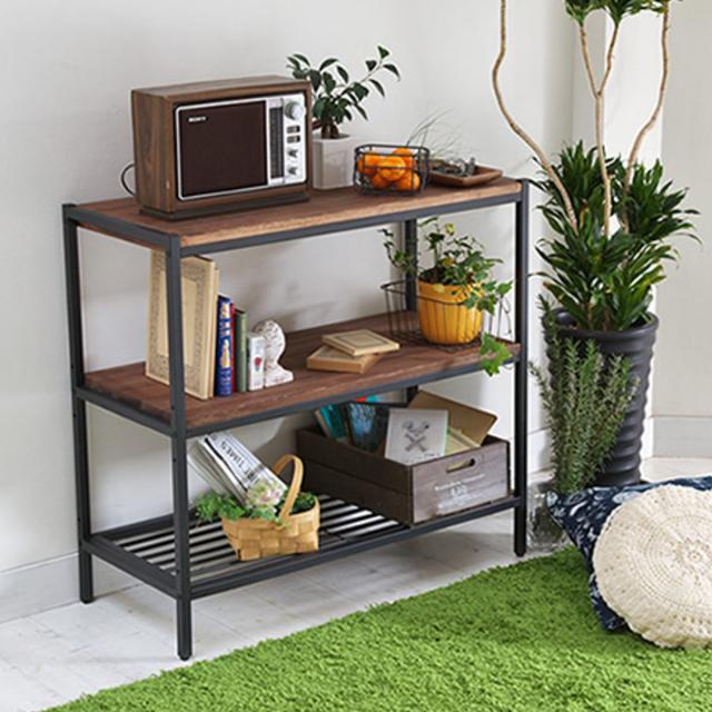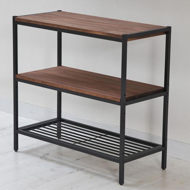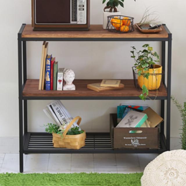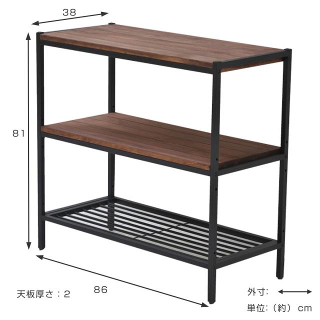 天然木×アイアンのレトロモダンな3段シェルフ 奥行38cm