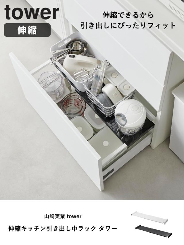 《 LH14614 yamazaki towerシリーズ 山実 YAMAZAKI 山崎 やまじつ 白 黒 モノトーン 無地 シンプル スタイリッシュ ホワイト ブラック 引き出し中収納 引き出し 引出し 調理器具 保存容器 食品ストック ドライヤー 洗面グッズ 収納 幅調節可能 伸縮タイプ 伸縮自在 シンク下収納ラック シンク下用収納 引出し内収納 引き出し内収納 整理整頓 キッチン 台所 台所収納 台所用品 キッチングッズ キッチンツール キッチン用品 キッチン小物 キッチン雑貨 整理 1729 1730 》
