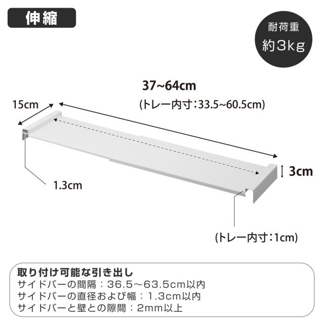 | サイズ | 幅37〜64×奥行15×高さ3cm 内寸 幅33.5〜60.5×高さ1cm |
