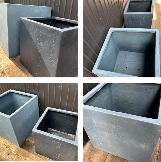 安定感のある四角い鉢は、オリーブやユーカリのような樹木をコンパクトに仕立てるのに最適です。モダンでシンプルなデザインと上品なカラーリングなので、寄せ植えもセンスよく仕上がります。