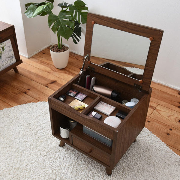 ドレッサー 幅45cm 鏡台 ミニタイプ 北欧風 Pico ( 化粧台 メイク コスメ アクセサリー 収納 メイク台 ロータイプ コンパクト おしゃれ シンプル ミラー付き 化粧水 ボトル 小物収納 ミニ 木目調 北欧 ナチュラル 茶 白 )