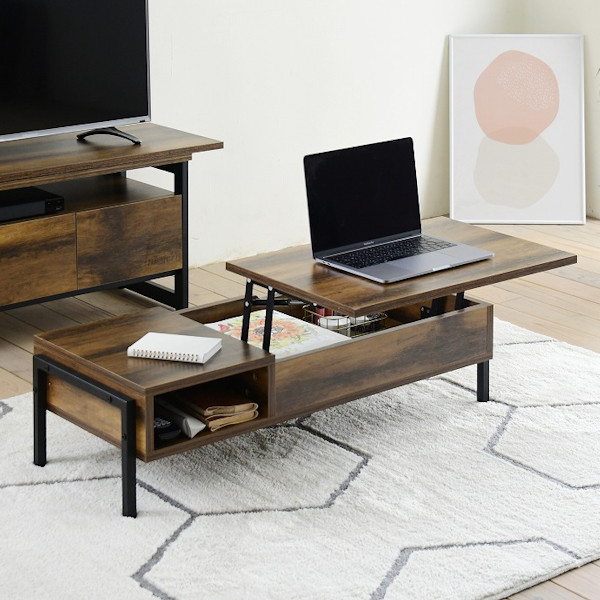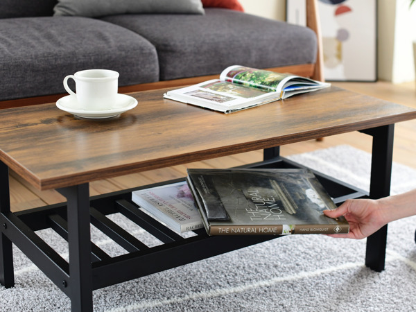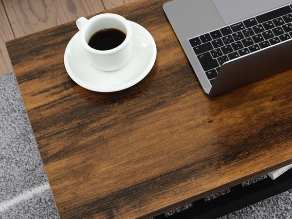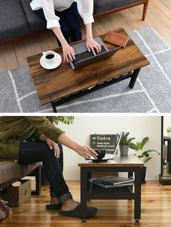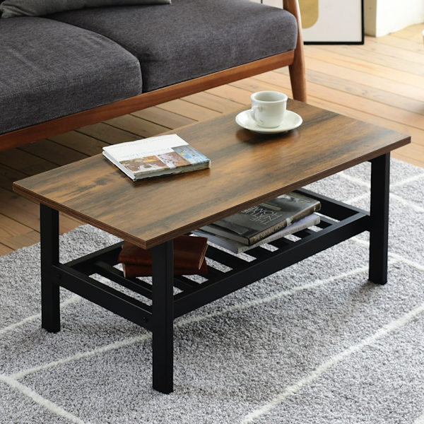 渋みと深みのあるヴィンテージライクなデザインのローテーブルです。ダークトーンの木目調とブラックのスチールで空間に重厚感と深みをプラスし、お部屋の雰囲気を大人っぽくおしゃれに惹き立ててくれます。