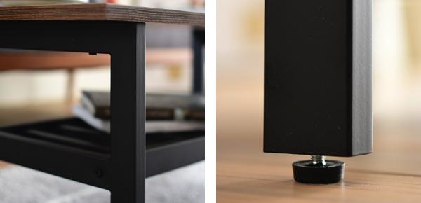 | マットなブラックスチール ツヤ消し加工を施した、落ち着いた印象のスチールです。 | アジャスター付き 高さを微調整できるアジャスター付きで、ガタつきを防止します。 |