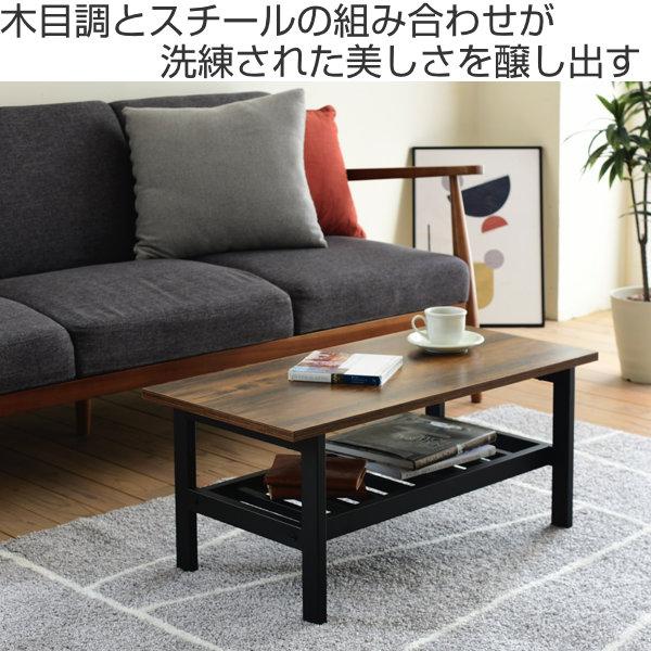 センターテーブル 幅80cm ELVIS ローテーブル リビングテーブル テーブル スチール ラック 机 ( ソファテーブル つくえ 黒 長方形 収納 家具 80cm 80センチ お洒落 おしゃれ 一人暮らし ブラウン ブラック )
