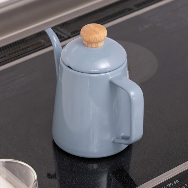 ホーローは熱効率がいいので、ガス火でもIH調理でもお湯を早く沸かすことができます。また、ホーローの表面はガラス質で金気を出さないのが特長です。コーヒーやお茶本来のおいしさを損なわずに楽しめます。