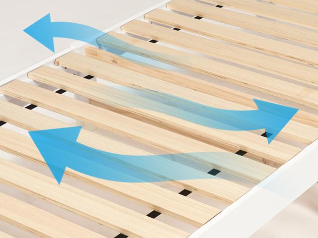 床板はロールすのこを採用しています。通気性が良いため汗や湿気を逃がして、寝具を清潔に保ちます。