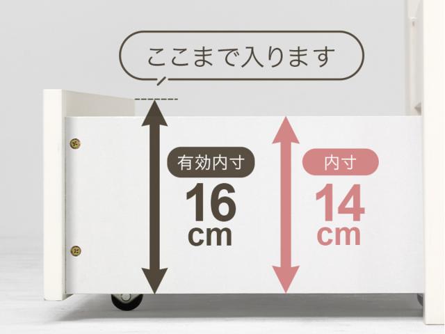 オープン側は高さ20.5cmあるので大きなものや、かさばるものを収納できます。収納ケースやキャリーケース、オフシーズンの家電など、まるごと収納できるのでお部屋もすっきりと片づきます。