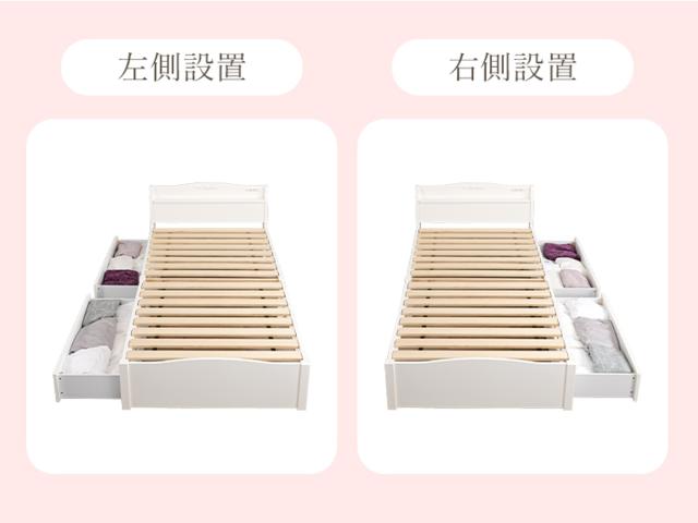 引出しは左右どちらにでも設置可能です。お部屋に合わせて入れ替えることができます。