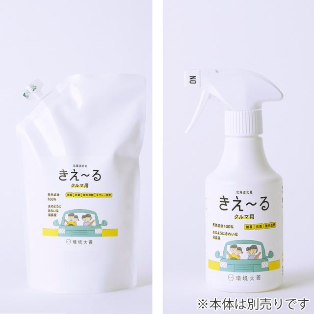 ●「きえ〜る」クルマ用スプレータイプの詰め替え用500mlです。
