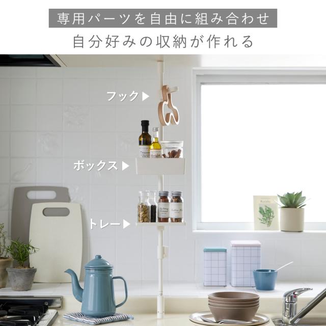 別売りのトレーやフック、深さのあるボックスなど豊富な専用パーツを組み合わせて自分好みにカスタマイズできます。使う場所に合わせてアイデア次第でいろんな使い方ができます。