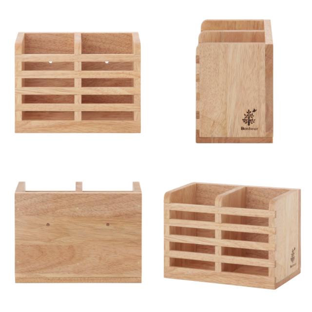 シンプルで使いやすい木製のカトラリースタンドです。強度の高いラバーウッドを使用、天然木のあたたかみのある風合いで、どんなキッチンにも馴染みます。フランス語で「幸せ」を意味する「Bonheur(ボヌール)」のロゴがポイントで、シリーズで揃えたくなる可愛いデザインです。