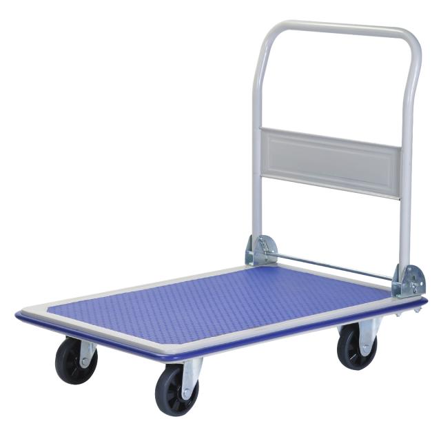 音が静かな静音タイプのスチール台車です。ペットボトルのケースや古紙などの重い荷物をまとめて運べるため便利です。丈夫で扱いやすくオフィスや倉庫内でも役立ちます。
