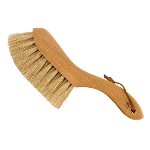 熟練の職人が丁寧に仕上げた馬毛を贅沢に使ったブラシは、柔らかく軽く掃くだけで、細かな砂やホコリまできれいに落としてくれます。動物の毛は静電気が起きにくく、ホコリが舞い散らないのも嬉しいポイントです。