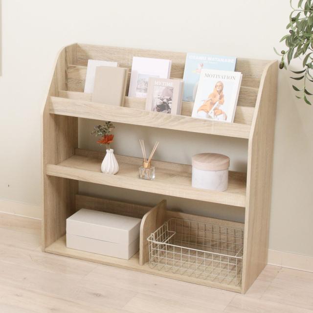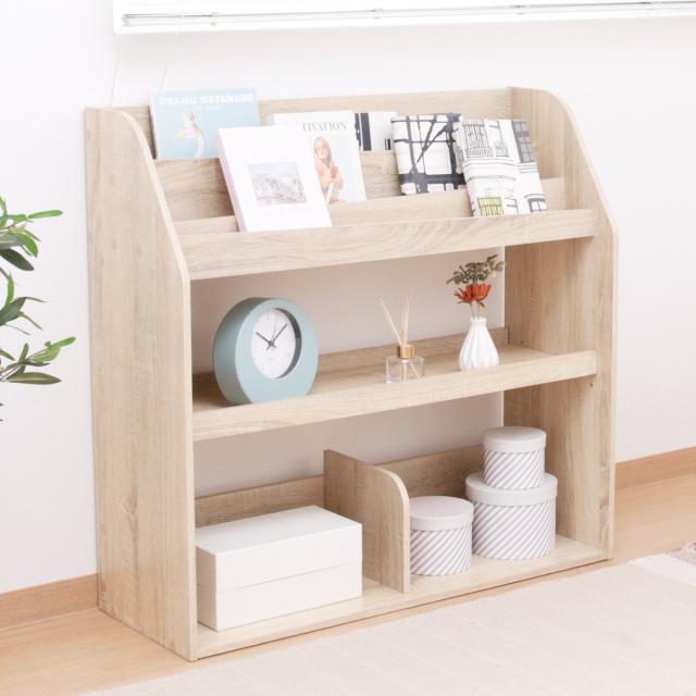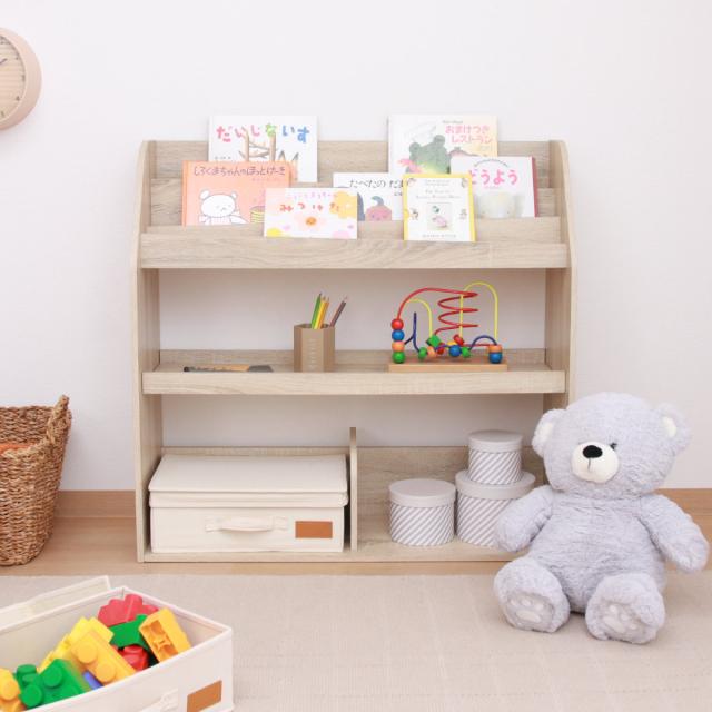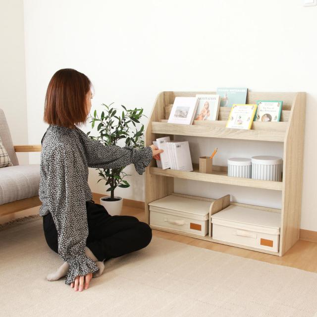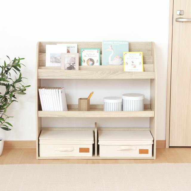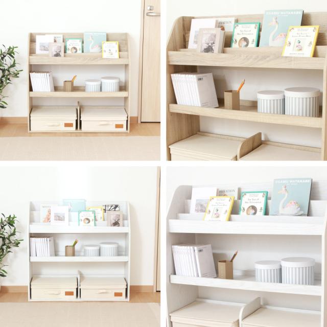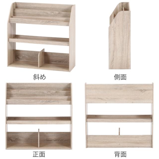 ブックラック 幅83cm 絵本ラック オープンタイプ ( 本棚 ラック 棚 絵本 ディスプレイ 収納 絵本棚 マガジンラック オーク オークホワイト 可動棚 )