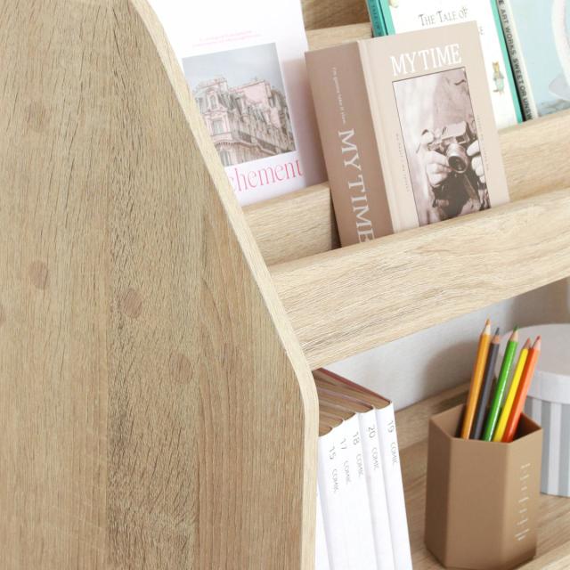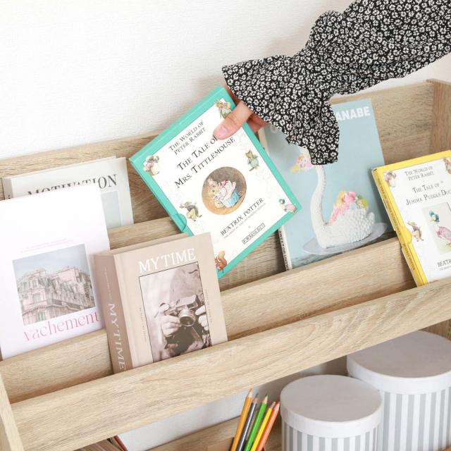 置くだけでおしゃれな空間になるブックラックです。ナチュラルな木目が美しく、お部屋に優しく馴染むデザインです。お気に入りの絵本や雑誌などをディスプレイしながら収納できます。