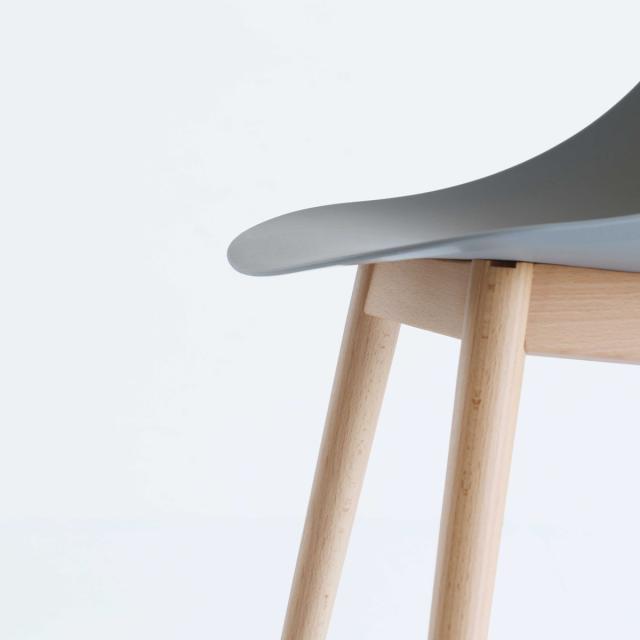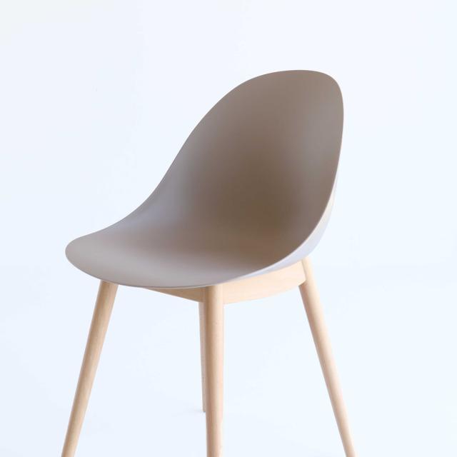 一体成型の美しい座面。雰囲気だけでなく、実際に作業をする際の効率向上を重視して設計しました。天然木を使用した脚は柔らかな印象です。