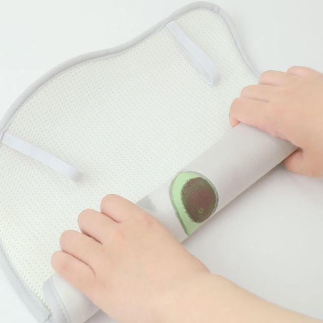 裏はメッシュ素材になっており、通気性が良いです。ゴムバンドも付いているので乾かす際に、フックなどに引っ掛けることができます。