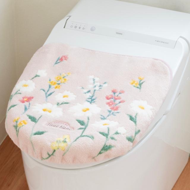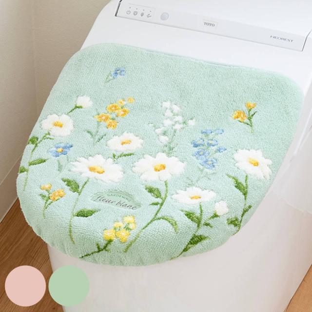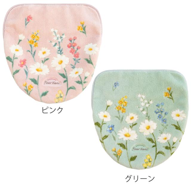 蓋カバー フルールブラン トイレフタカバー 兼用 ( 蓋 フタ カバー 吸着 U型 O型 洗浄暖房型 兼用タイプ 洗濯OK 日本製 トイレタリー ふたカバー 吸着タイプ 丸洗い 花柄 マーガレット ピンク グリーン )