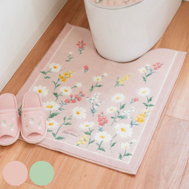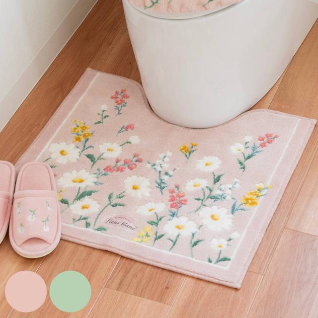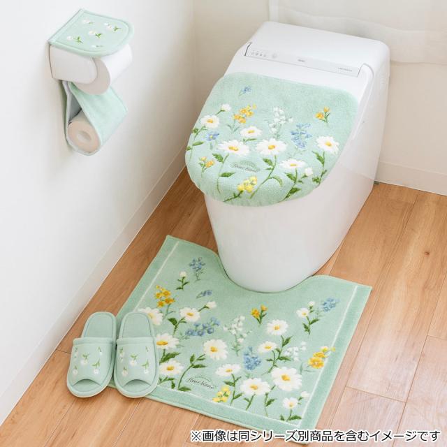 落ち着いたベースカラーにマーガレットと小花が咲く「フルールブラン」シリーズ。さりげない可愛さを感じるデザインで、トイレ空間をパッと華やかにしてくれます。便座カバー、フタカバー、トイレマット、ペーパーホルダーカバー、スリッパで揃えるとやすらぎの空間を創れます。