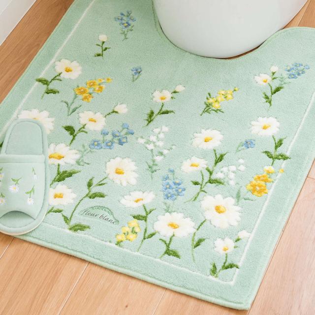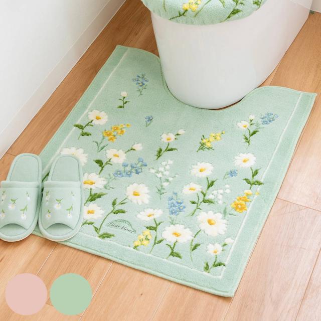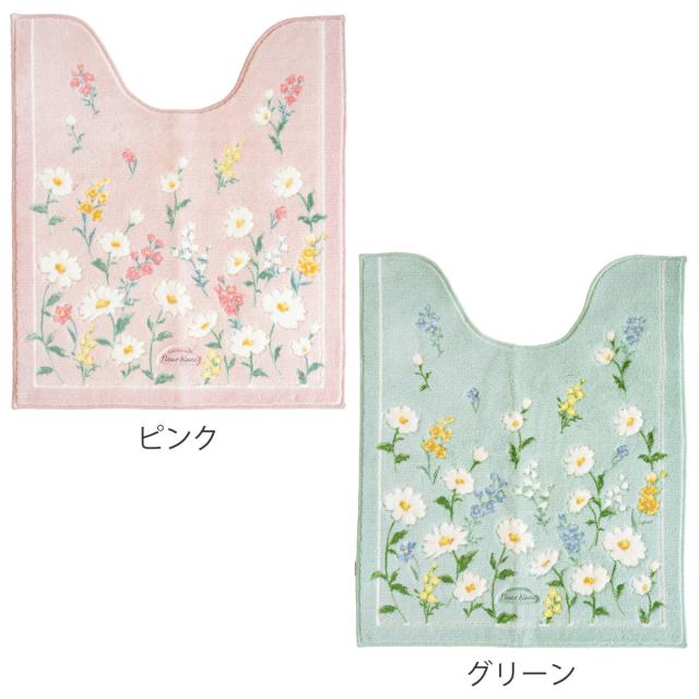 トイレマット フルールブラン ロングトイレマット 約75×63cm ( トイレ マット 足元マット ロング 抗菌 防臭 滑り止め 洗濯OK 日本製 トイレタリー すべり止め 丸洗い 75×63 花柄 マーガレット ピンク グリーン )