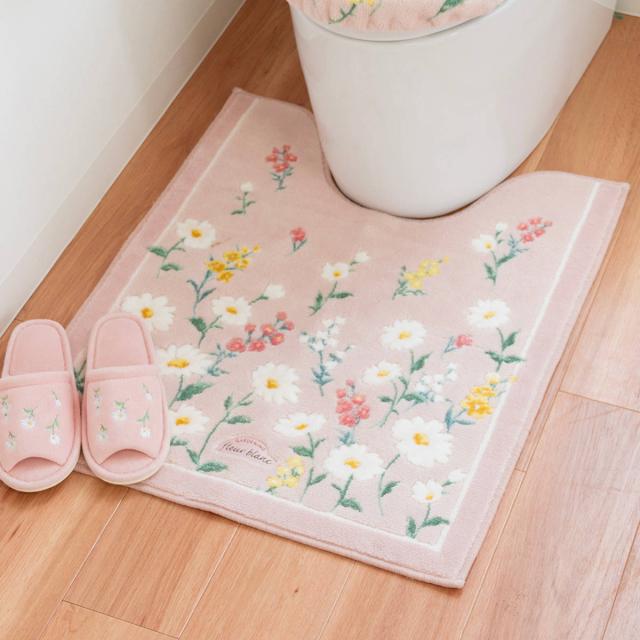 落ち着いたベースカラーにマーガレットと小花が咲く「フルールブラン」シリーズ。さりげない可愛さを感じるデザインで、トイレ空間をパッと華やかにしてくれます。便座カバー、フタカバー、トイレマット、ペーパーホルダーカバー、スリッパで揃えるとやすらぎの空間を創れます。