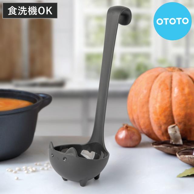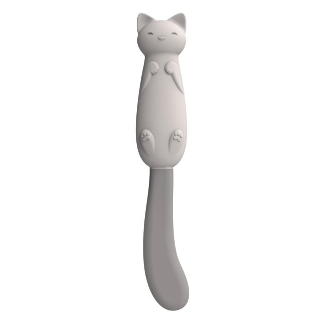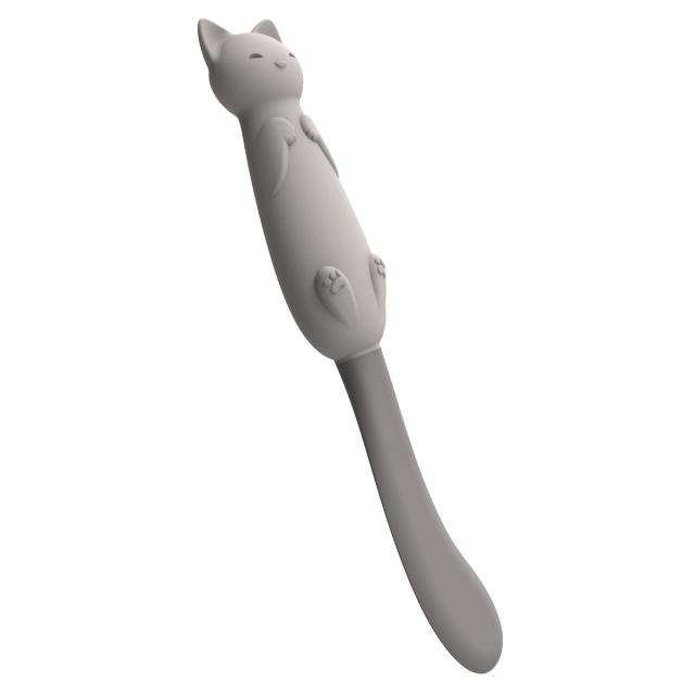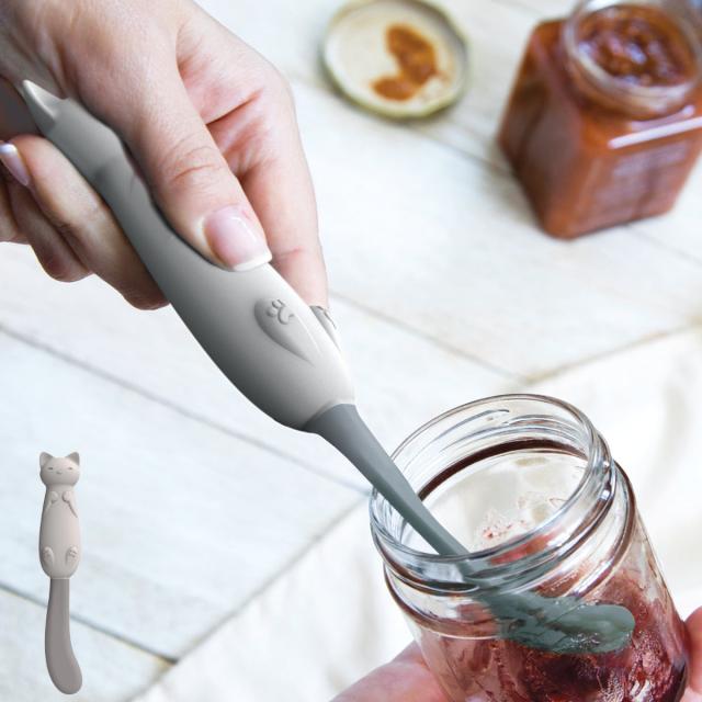 かわいい猫の形をしたスパチュラです。自慢のやわらかシッポで、瓶底のジャムやペースト状の食べ物を最後まできれいにかき取ります。耐熱性があるので、レトルトパウチからの取り出しもでき、食洗機にも対応しています。