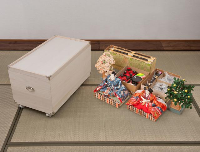 ひな人形・五月人形の収納に最適な桐収納ケースです。桐には防湿・防虫効果があり、内部を一定の湿度に保つ働きがあります。一年のほとんどの期間で収納しているひな人形は、桐収納で保管するのがおすすめです。