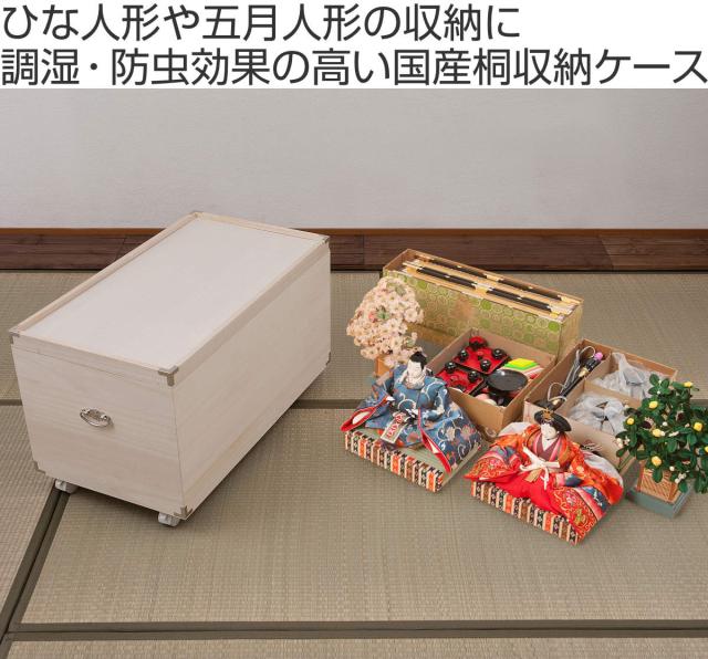 桐 ひな人形ケース 幅42cm 1段 キャスター付 日本製 完成品 ( 収納ケース 雛人形 天然木 押し入れ 木箱 収納 家具 桐箱 お雛様 五月人形 親王飾り 保管 保存 調湿 防虫 シンプル キャスター )